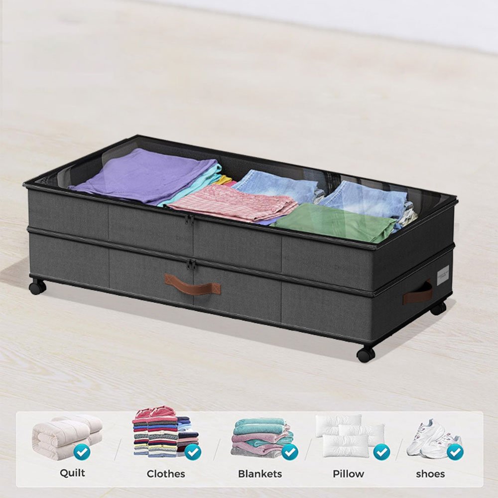 Expandable Two-Tier Design – This Bulk Under Bed Storage with Wheels features an adjustable height (5.5″–10″), making it perfect for maximizing storage space under various bed sizes.