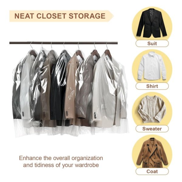 Organize Your Closet – This set includes 40 clear garment bags, each measuring 60x90cm (23.6×35.4 inches), designed to keep your wardrobe neat and tidy.