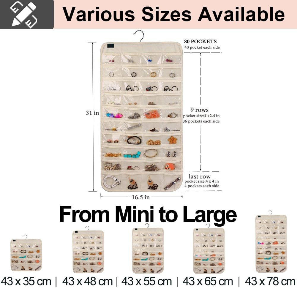 Features 80 clear vinyl pockets (40 on each side) to neatly organize a variety of jewelry items, including rings, earrings, necklaces, and bracelets.