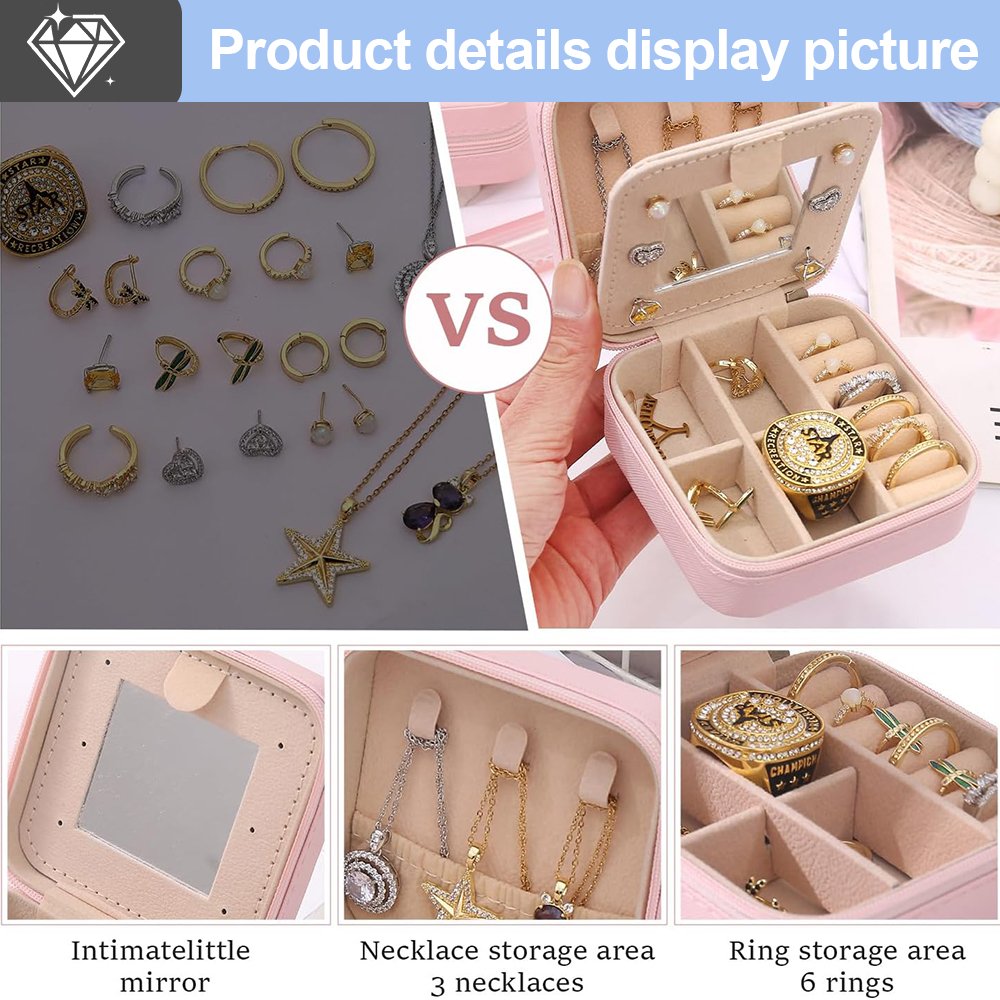 OEM Compact Travel Jewelry Box with Mirror and Dividers