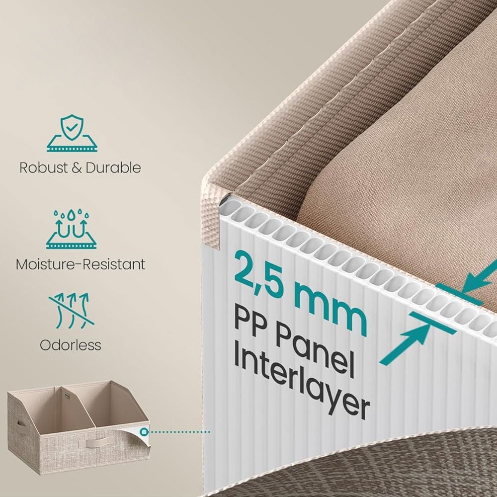 Made with premium 2.5 mm thick PP panels and non-woven fabric, this storage box resists moisture and odors, ensuring lasting durability.