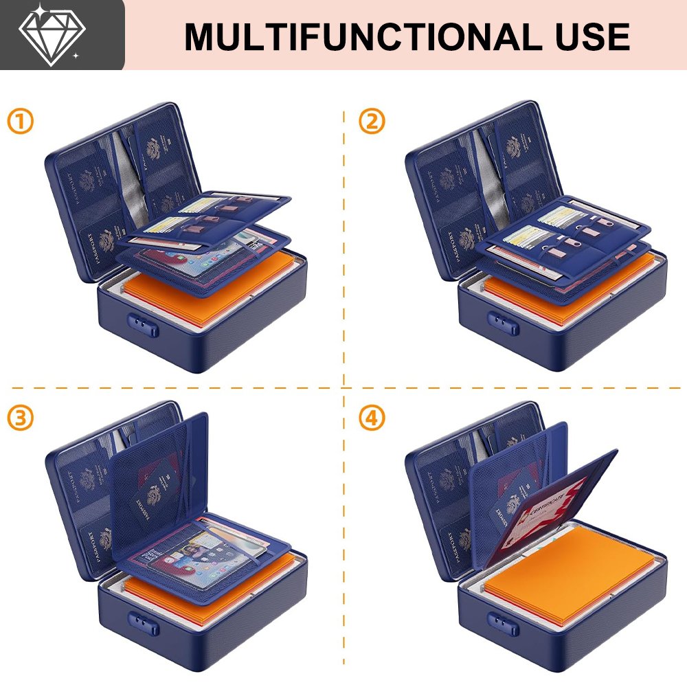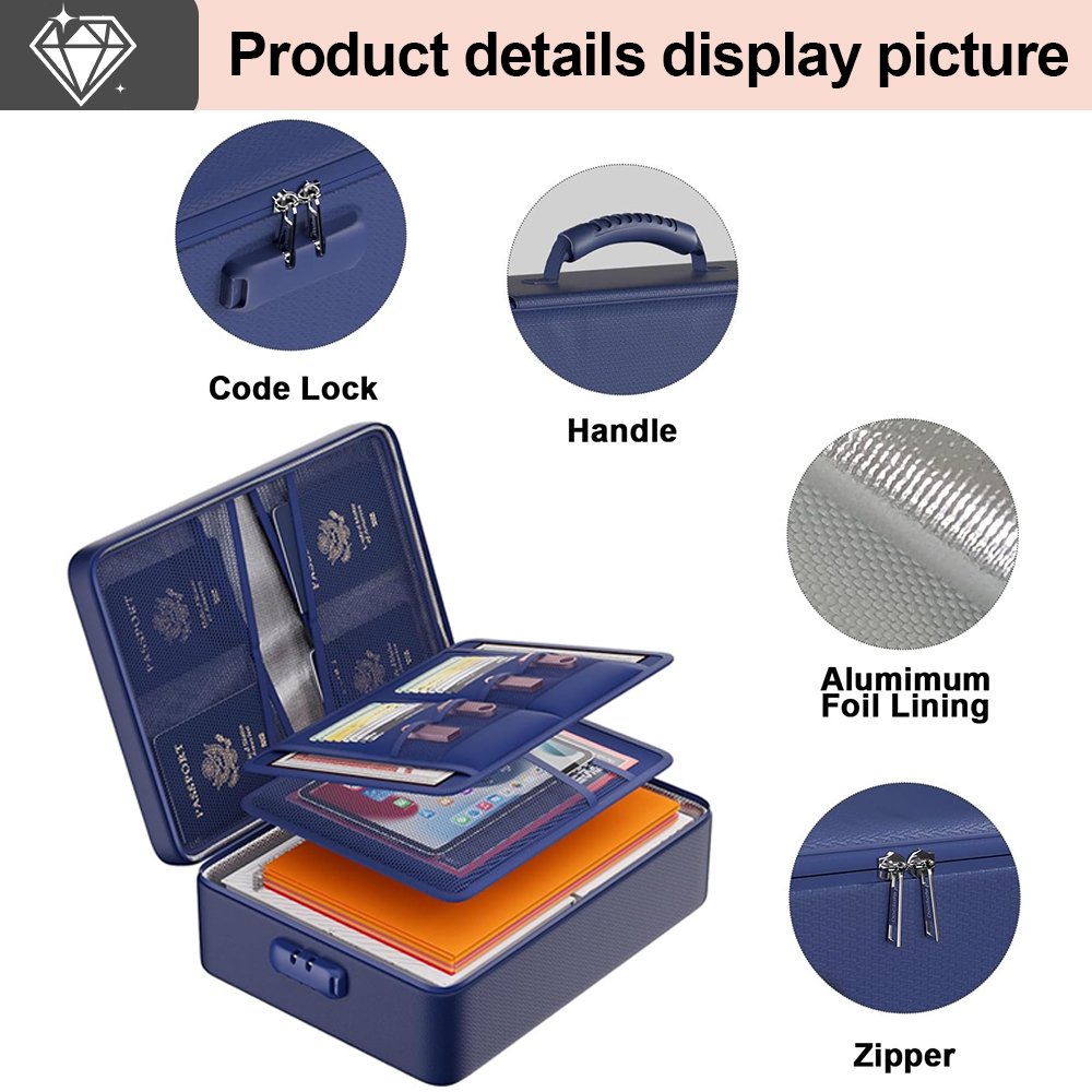 Constructed from heat-resistant fireproof cotton and aluminum foil lining, tested to withstand up to 5200°F, keeping documents safe from fire, flood, and wet weather.